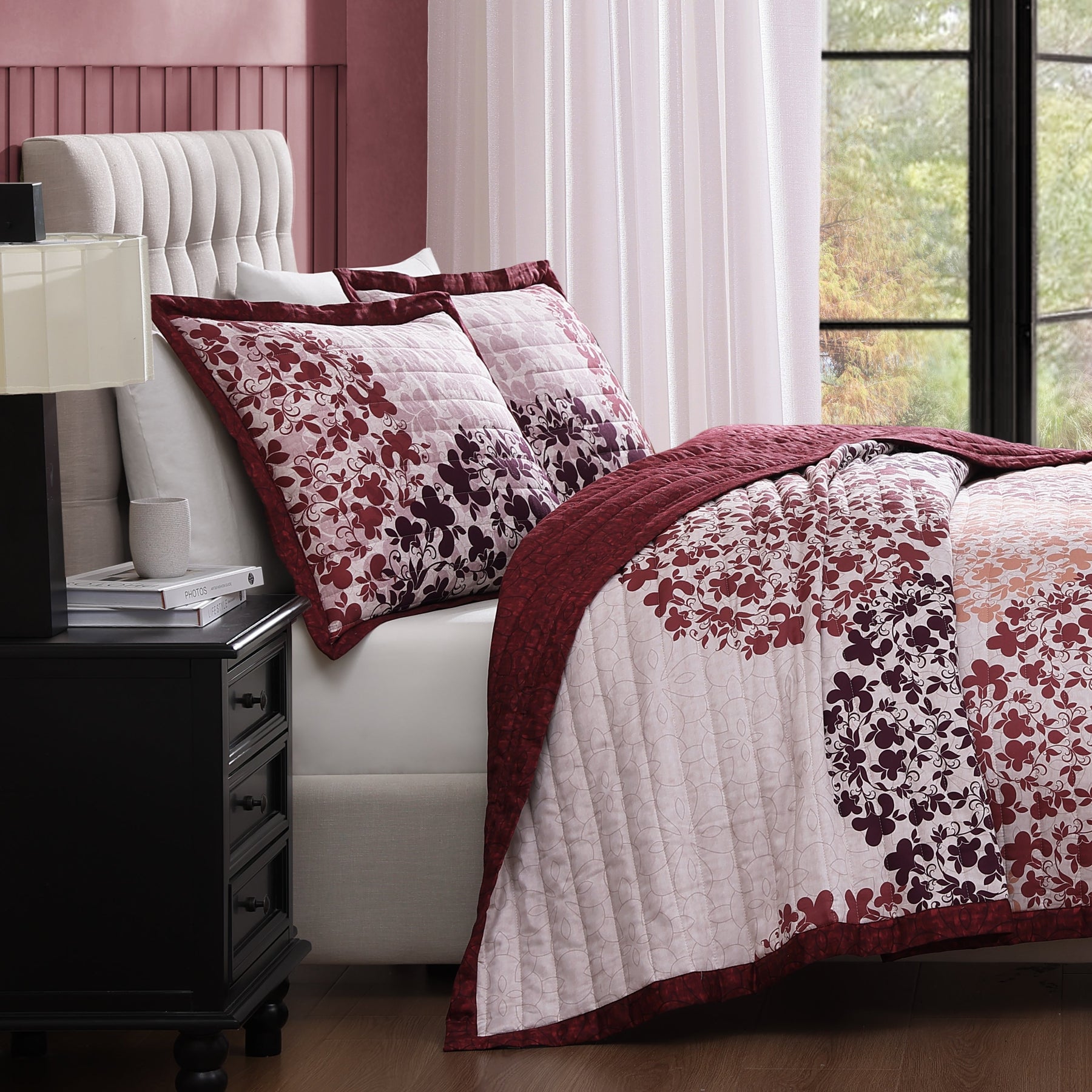 Bebejan Rosewood Harmony 3 Piece Reversible Quilted Coverlet Set